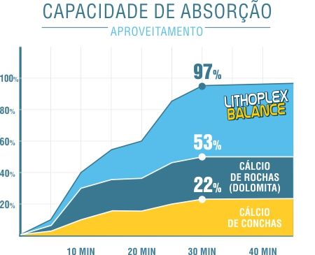 A absorção do cálcio orgânico presente no Lithoplex Balance mostrou-se até 3x maior do que o cálcio comum.
